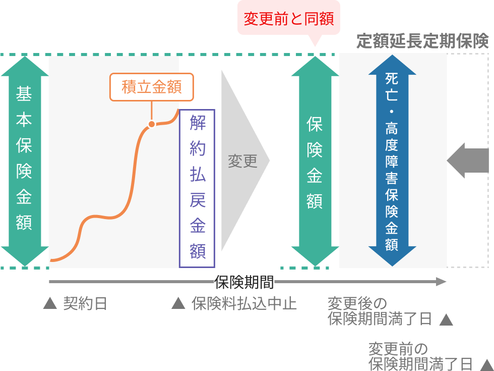 保険料の払込みを中止して、定額延長定期保険に変更することができます。