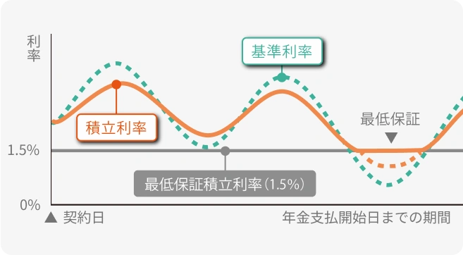 積立利率は最低保証積立利率(1.5%)を下回ることはありません。